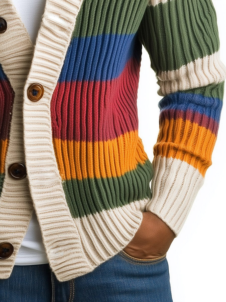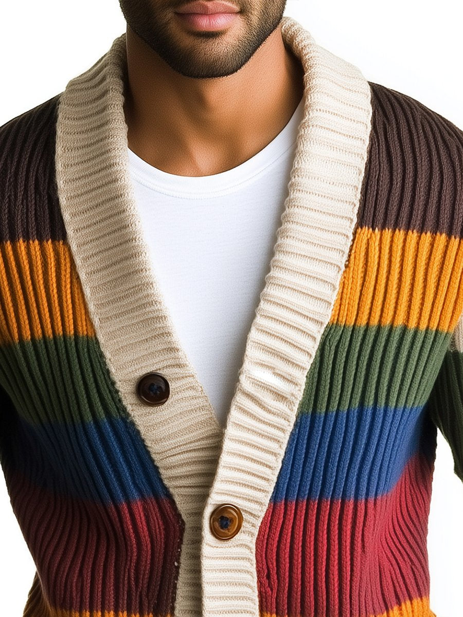 Men’s Casual Rainbow Striped Long Sleeve Knit Cardigan