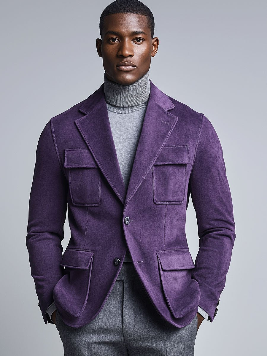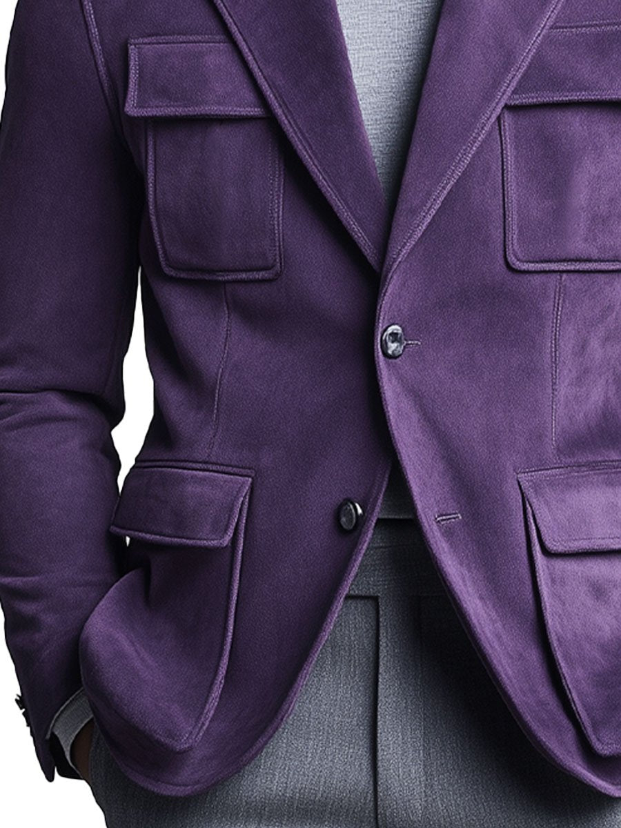 Step up your fashion game with the Men’s Lapel Multi-Pocket Purple Suede Blazer, a striking and sophisticated addition to your wardrobe. Crafted from luxurious suede fabric, this blazer combines classic tailoring with contemporary flair. Featuring a sleek lapel, multiple pockets, and a rich purple hue, this blazer adds a bold yet refined touch to any outfit. Whether you’re dressing up for a night out or adding a unique twist to your everyday look, this blazer offers the perfect balance of style and functionality.