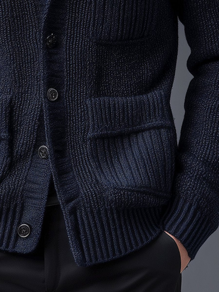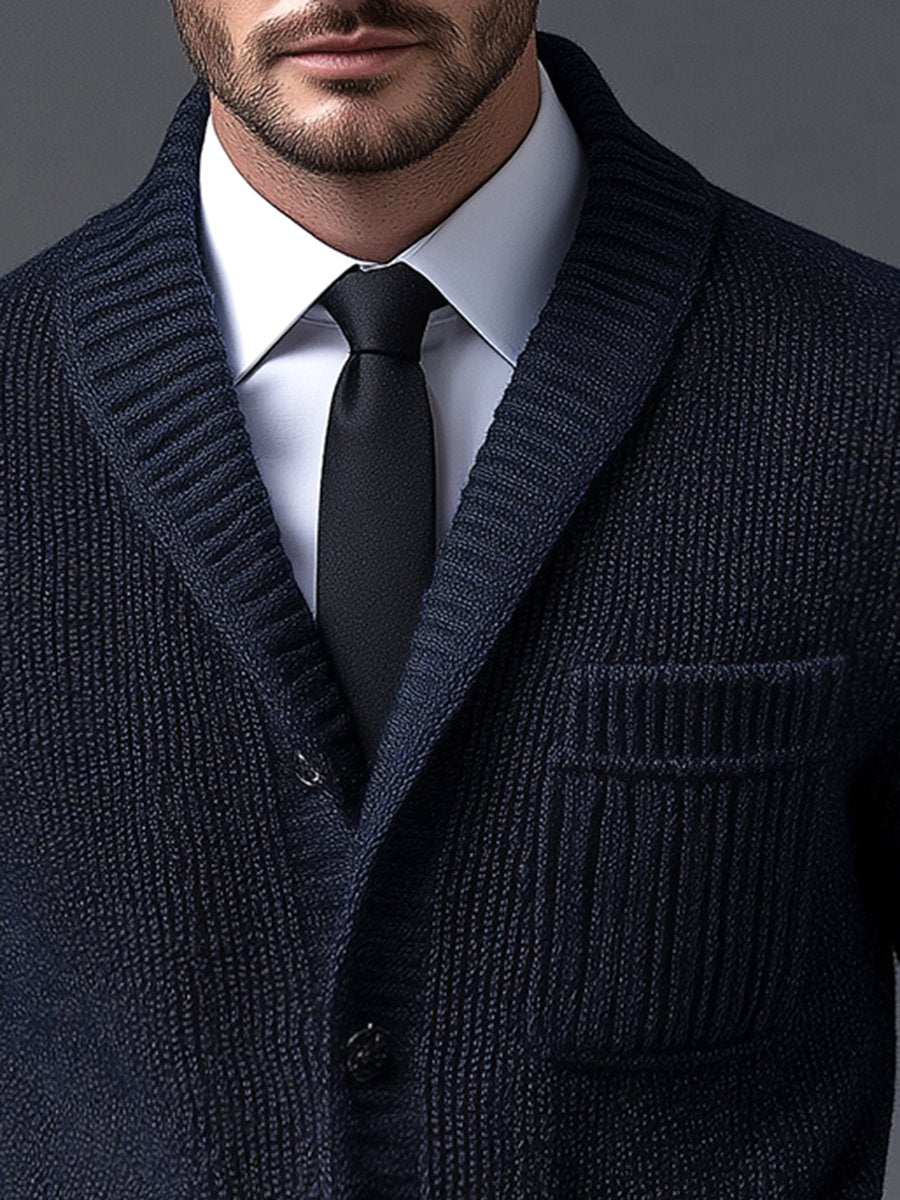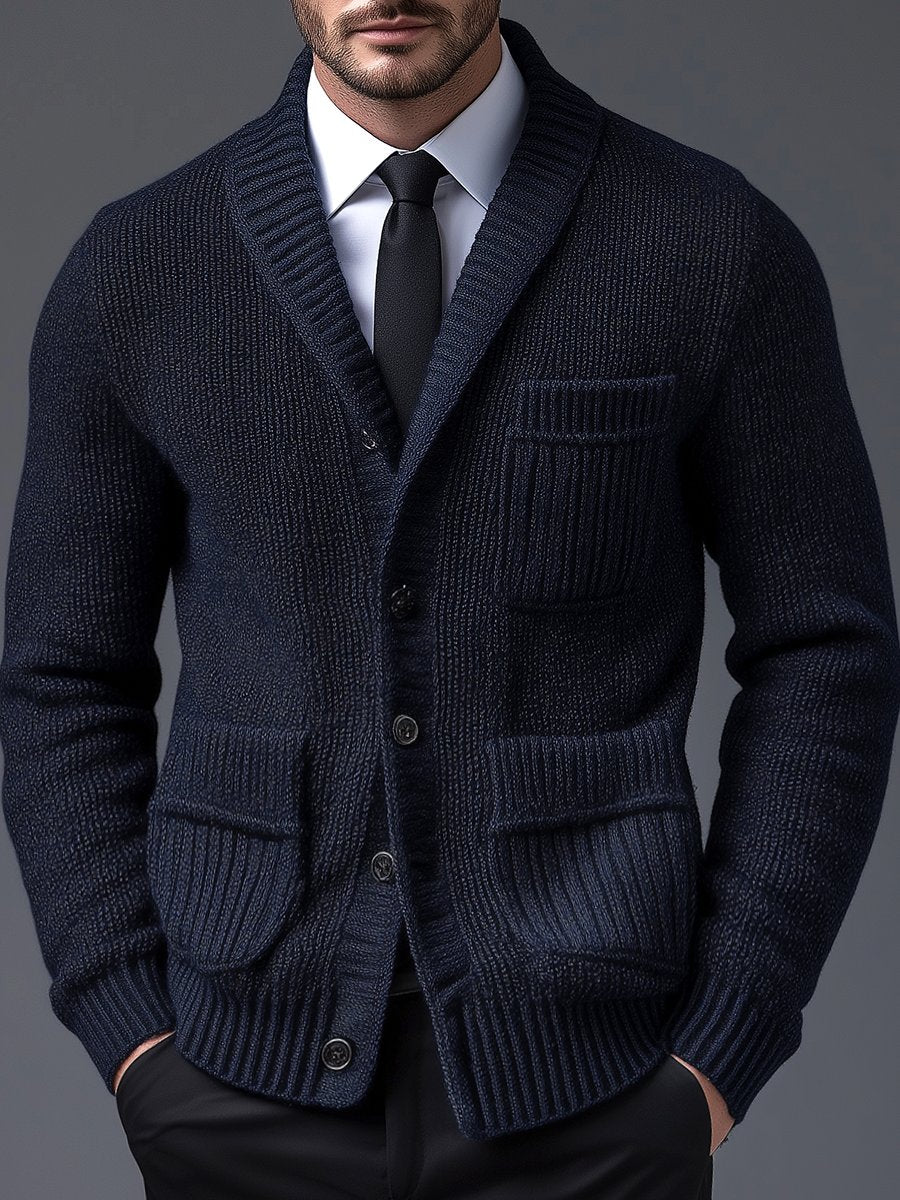 Made from soft, high-quality knitted fabric, this cardigan provides exceptional warmth and comfort, perfect for layering over shirts or sweaters. The solid color gives it a timeless appeal, while the lapel collar adds a refined touch. Featuring three pockets—two on the front and one on the chest—this cardigan ensures you have ample space to carry essentials while keeping a sleek, polished appearance.