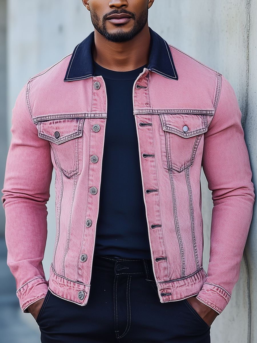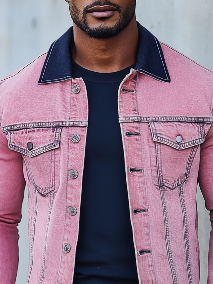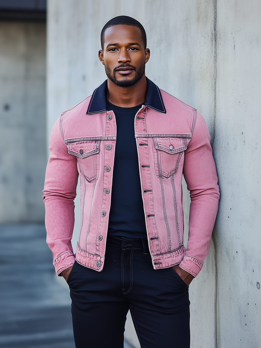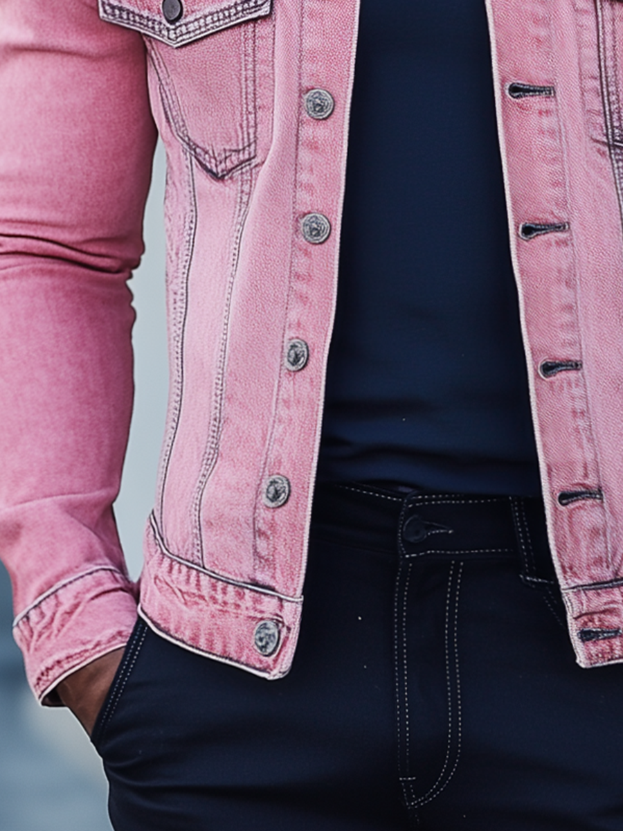 Add a pop of color to your wardrobe with the Men’s Stylish Pink Denim Jacket. This modern take on the classic denim jacket combines vibrant style with timeless appeal, creating a standout piece for those who aren’t afraid to make a fashion statement. Whether you’re looking to stand out on a casual outing or add a bold layer to your outfit, this pink denim jacket delivers both flair and comfort.