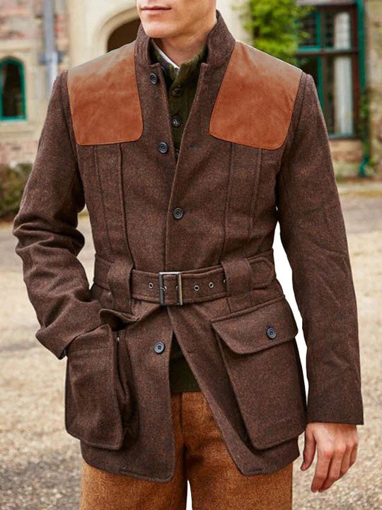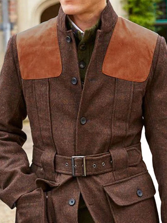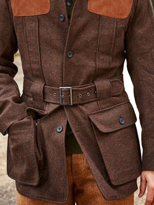 Suede Wool Patchwork Double Pocket Lace-Up Casual Jacket