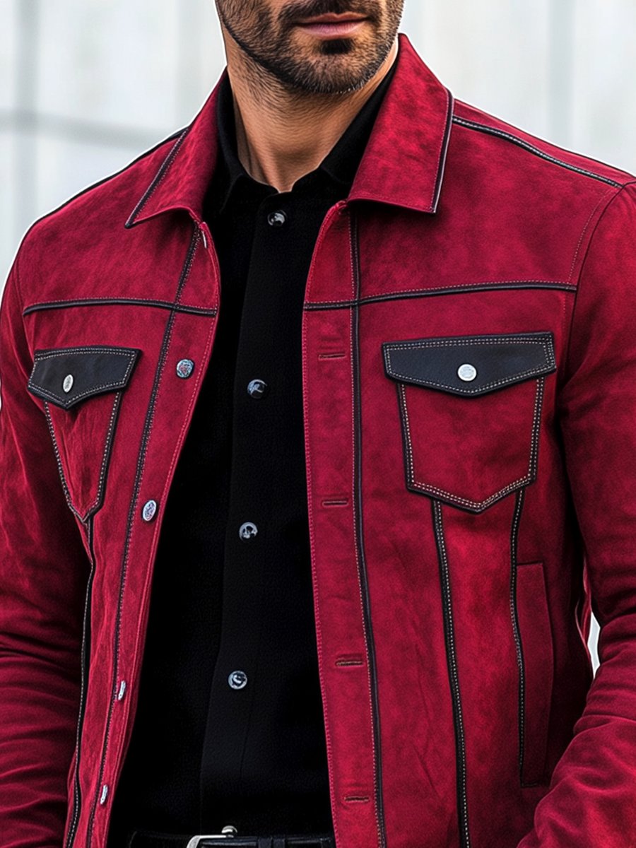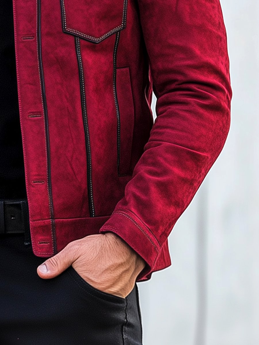Men’s Vintage Suede Three Pocket Lapel Casual Blazer