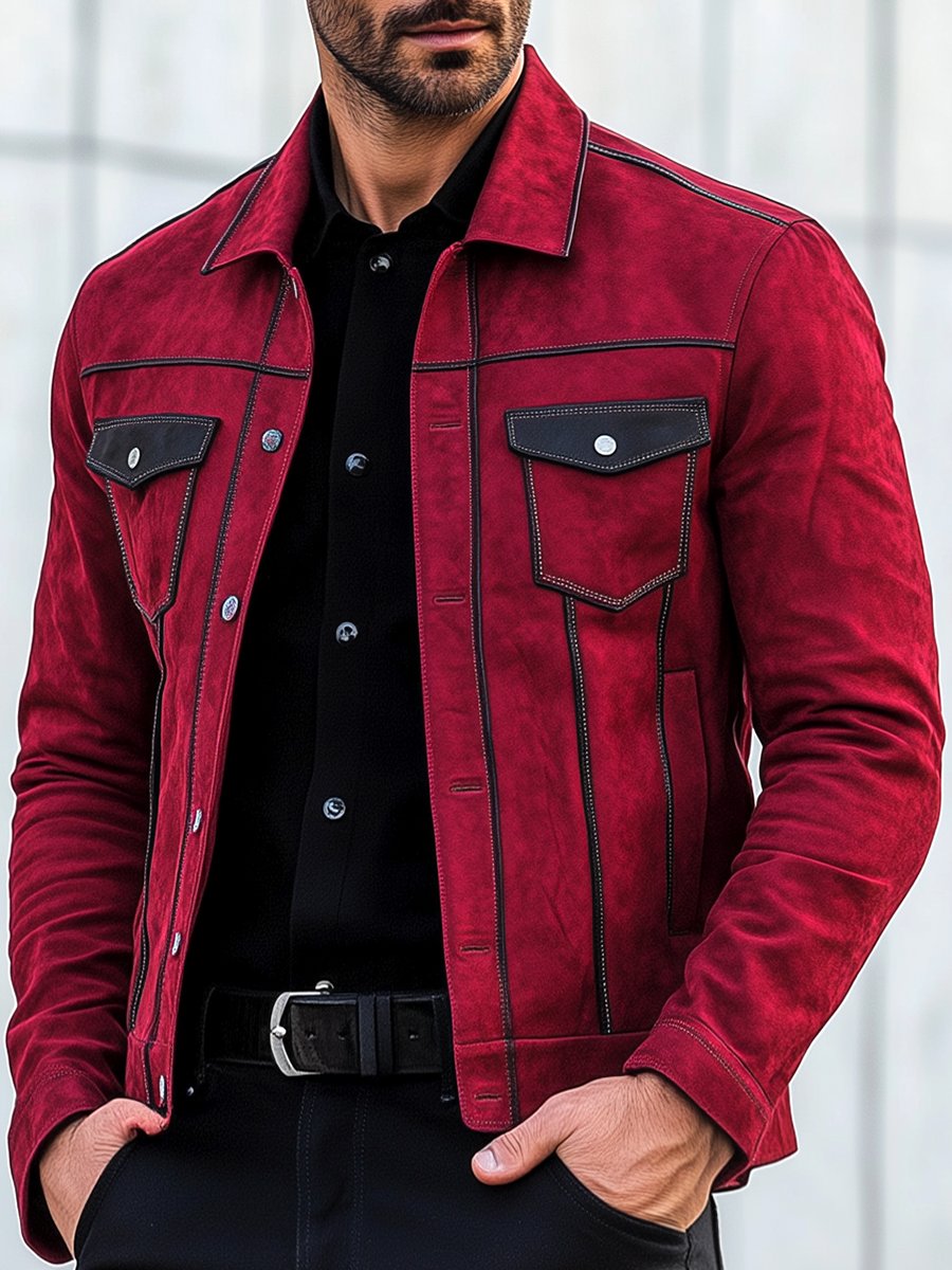 Men’s Vintage Suede Stand Collar Pocket Casual Blazer